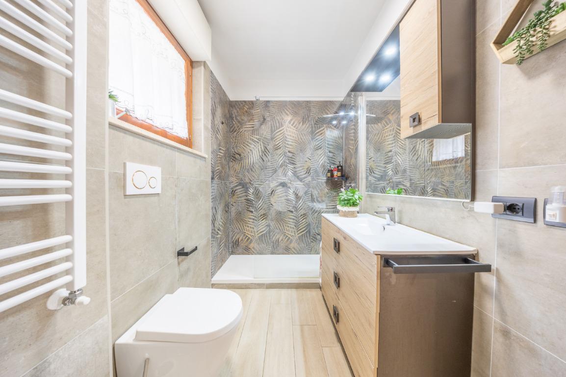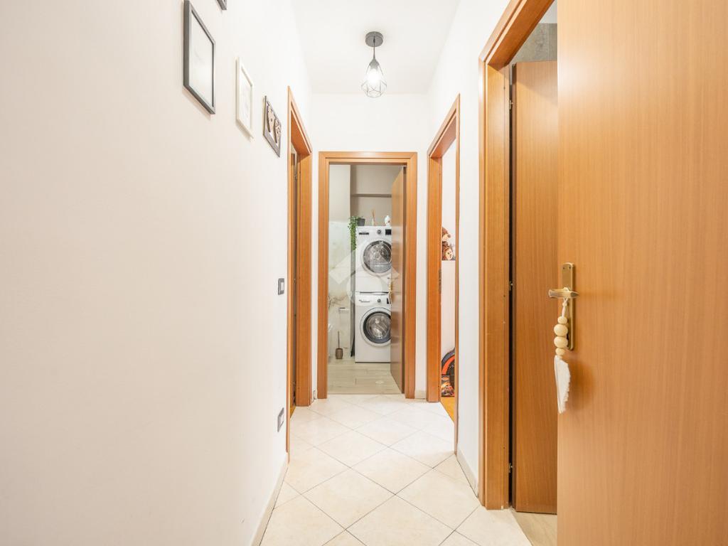 Il disimpegno separa ottimamente zona giorno e zona notte ed accompagna alle due comode stanze da letto ed ai due bagni recentemente ristrutturati a nuovo.